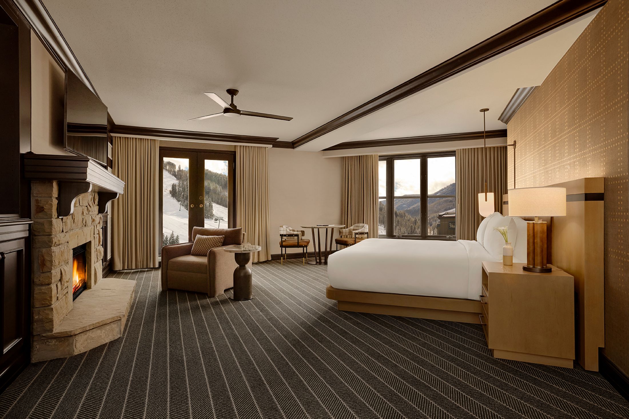 Fireplaces, balconies & mountain views…we love the cozy “just us” alpine vibe and just steps away from the slopes!